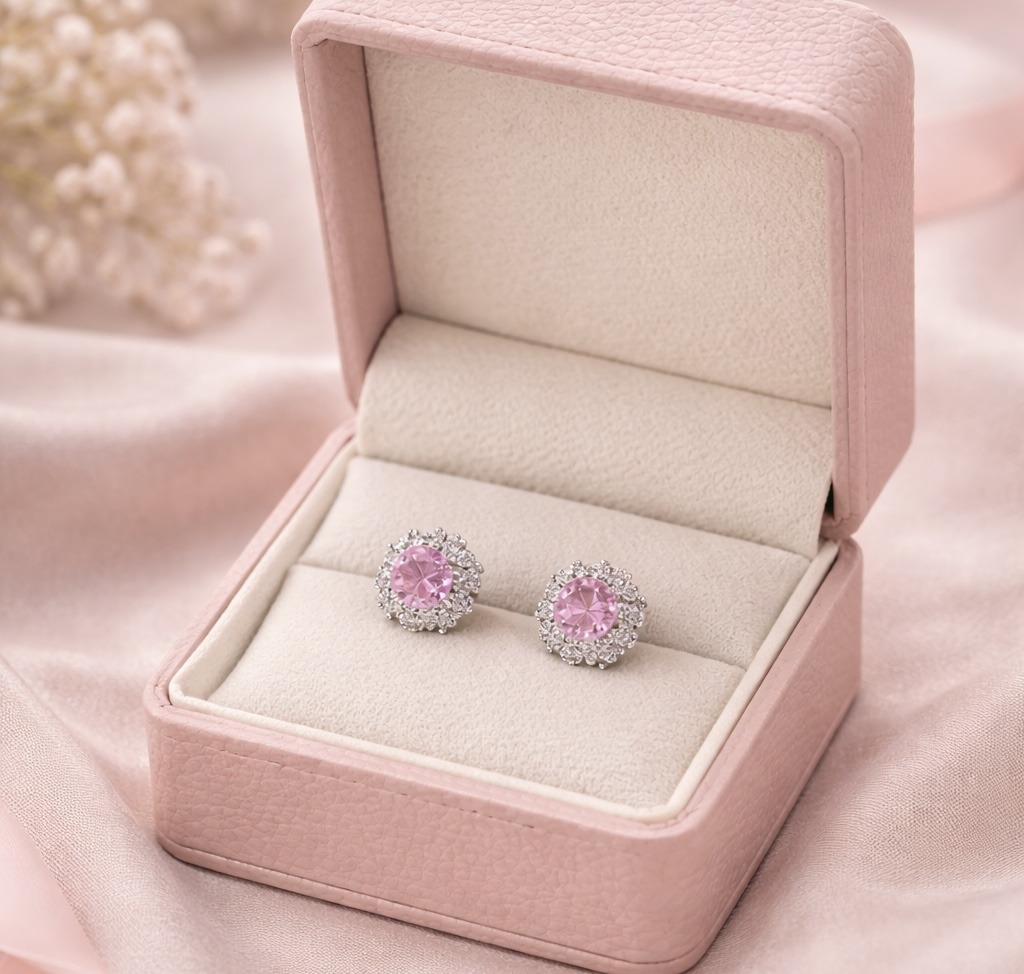Floral halo pink stud earrings with a delicate sparkle—elegant, feminine, and perfect for everyday shine ✨💎