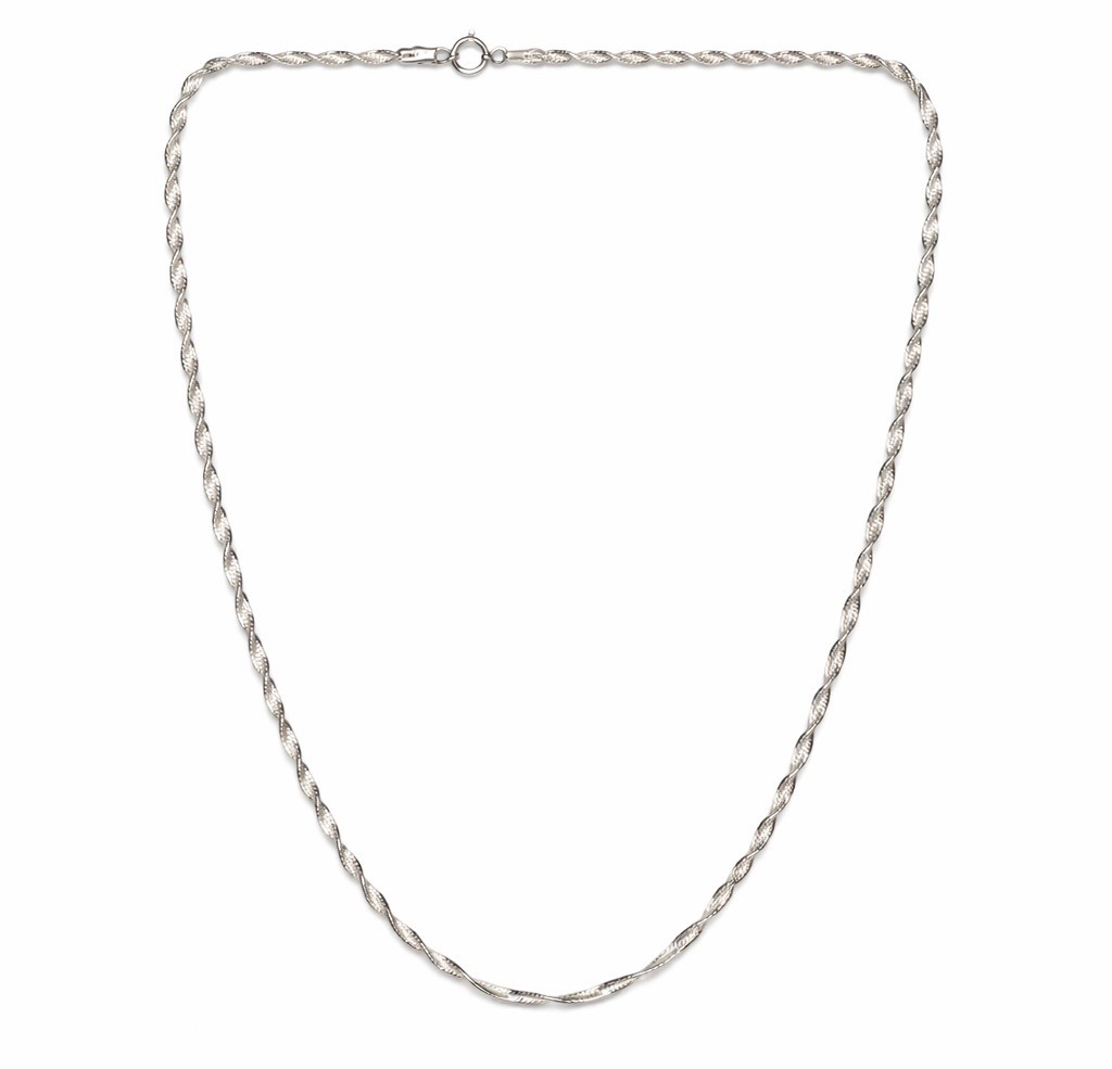 Elegant twisted silver chain with a sleek, timeless shine—perfect for everyday luxury