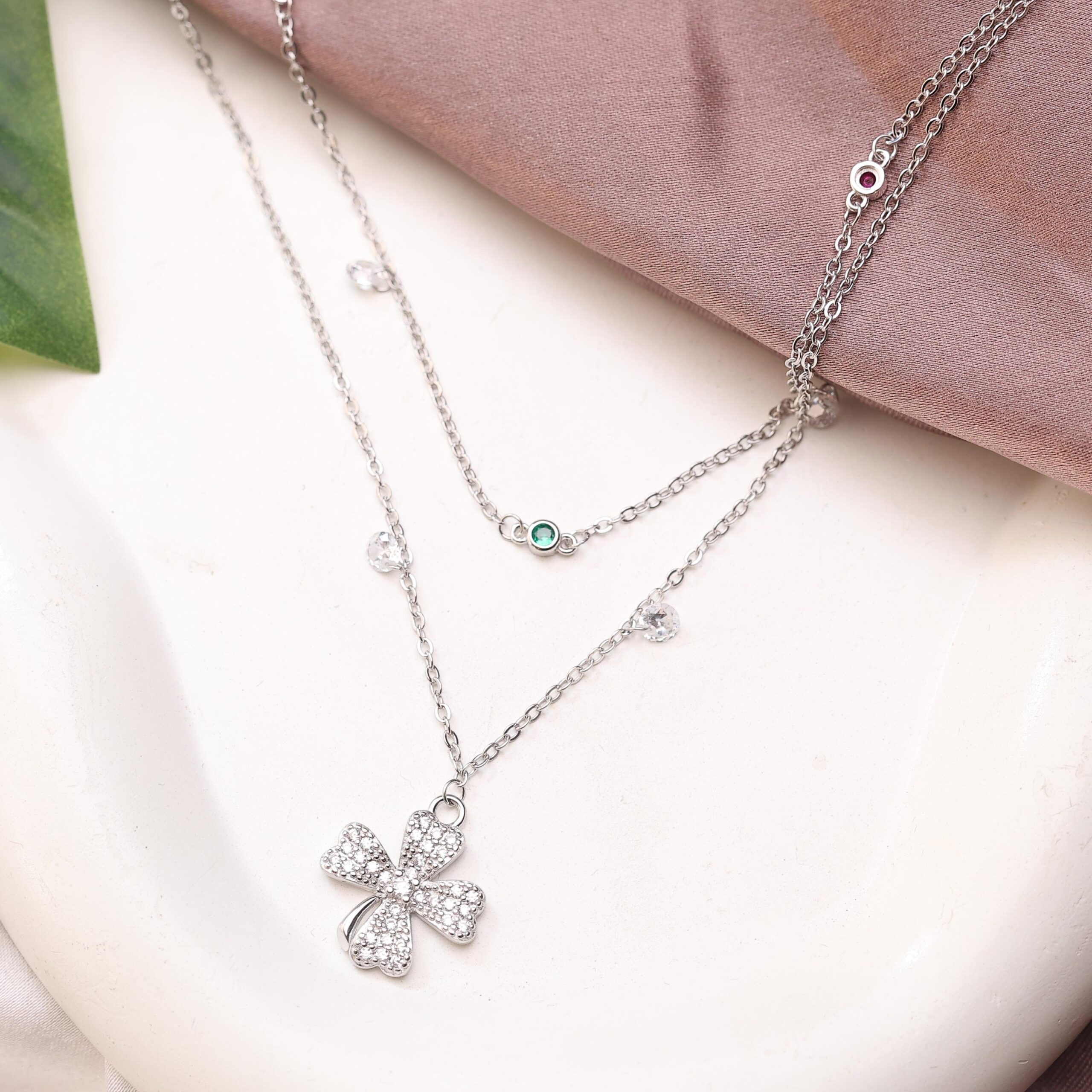 This elegant necklace is crafted from 925 sterling silver and features a sparkling four-leaf clover charm that symbolizes luck and positivity. The delicate layered design adds a refined, modern touch. Lightweight and stylish, it is perfect for everyday wear or special occasions. Features: