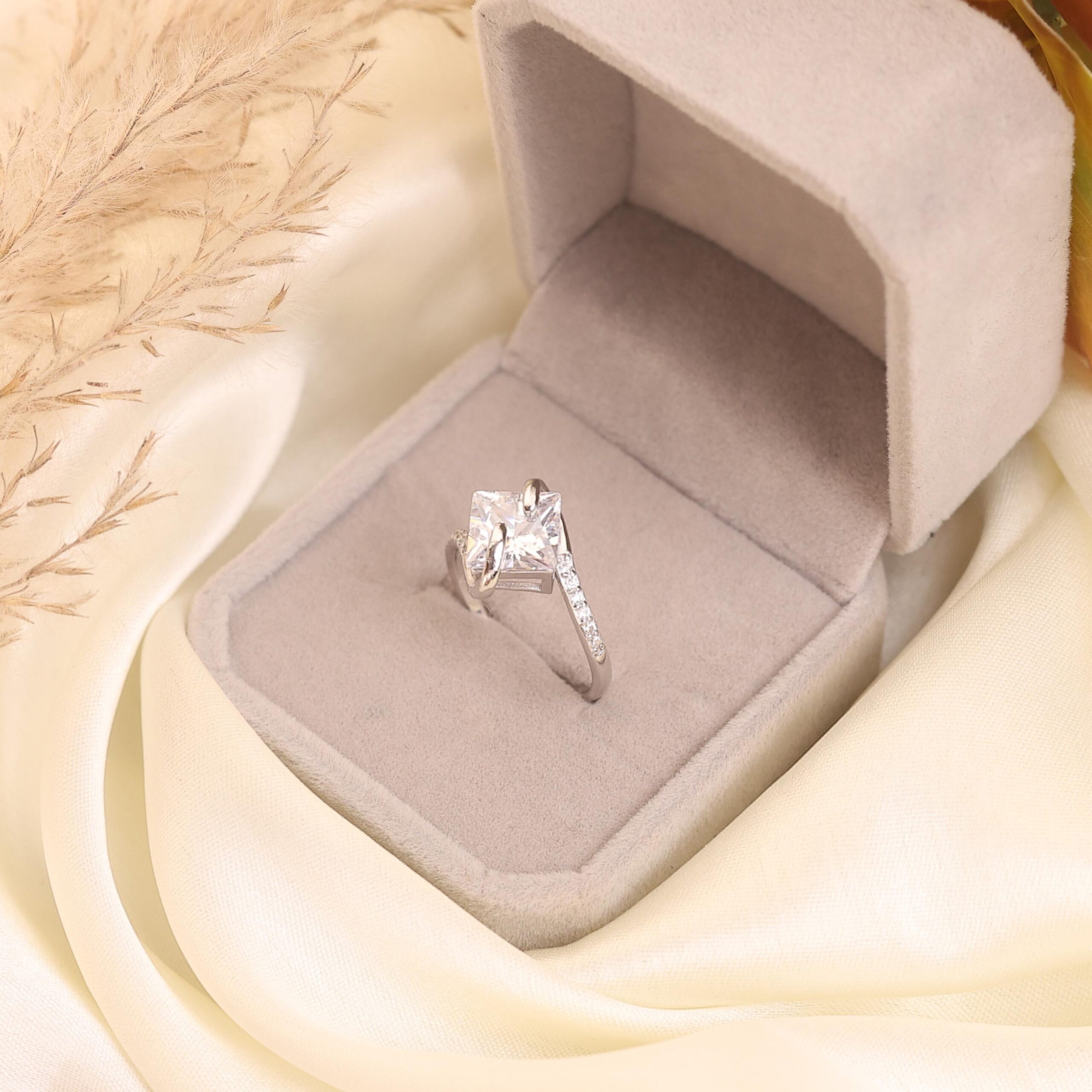This stunning ring features a beautifully cut solitaire stone held in a unique heart-inspired design, symbolizing love and elegance. The sleek band with subtle sparkle adds a modern yet timeless touch.