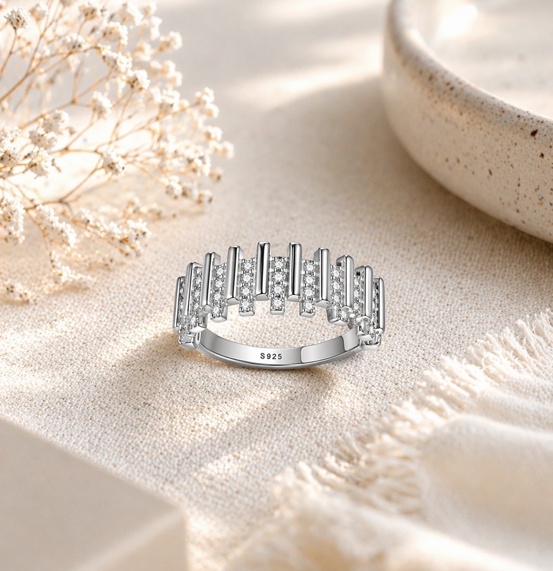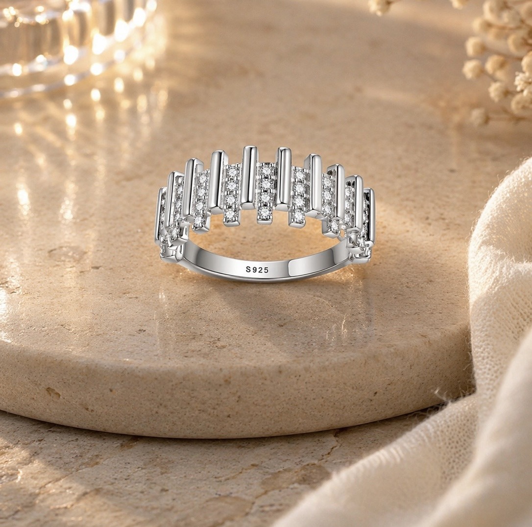 A dazzling S925 sterling silver ring featuring a crown-inspired design with sparkling stones—perfect for adding a touch of royalty to any look 👑