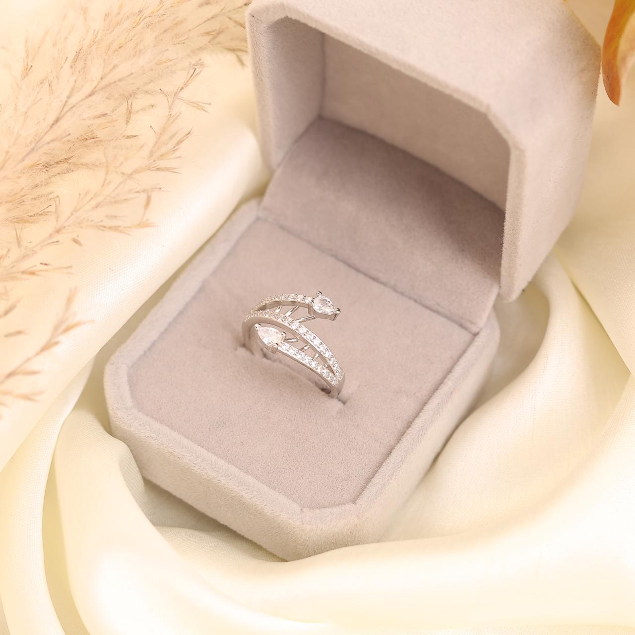 A graceful women’s ring featuring a delicate dual-band design accented with sparkling stones. Perfect for adding a touch of elegance to everyday and special looks.