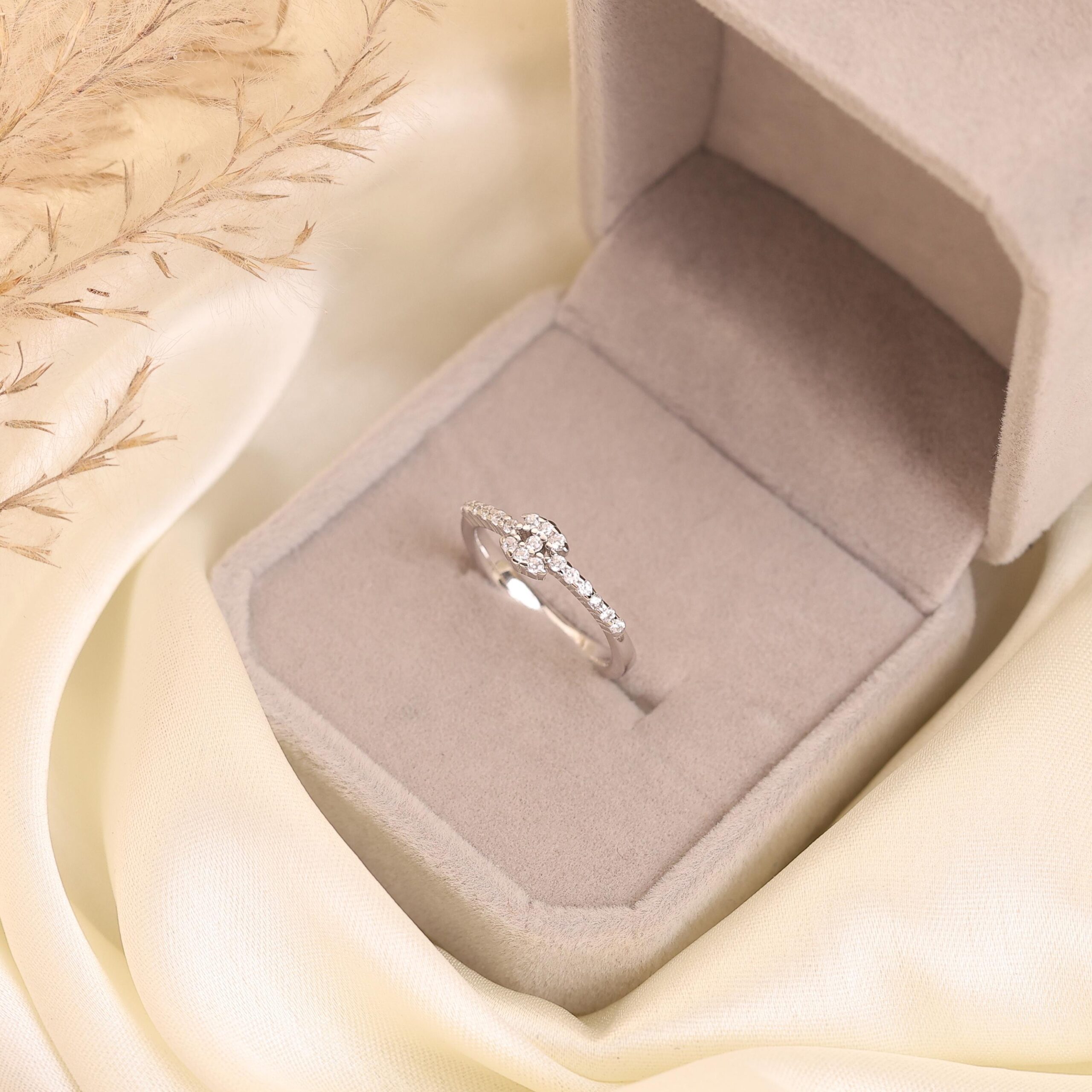 A delicate women’s silver ring with a sparkling pavé floral design for timeless eleganc