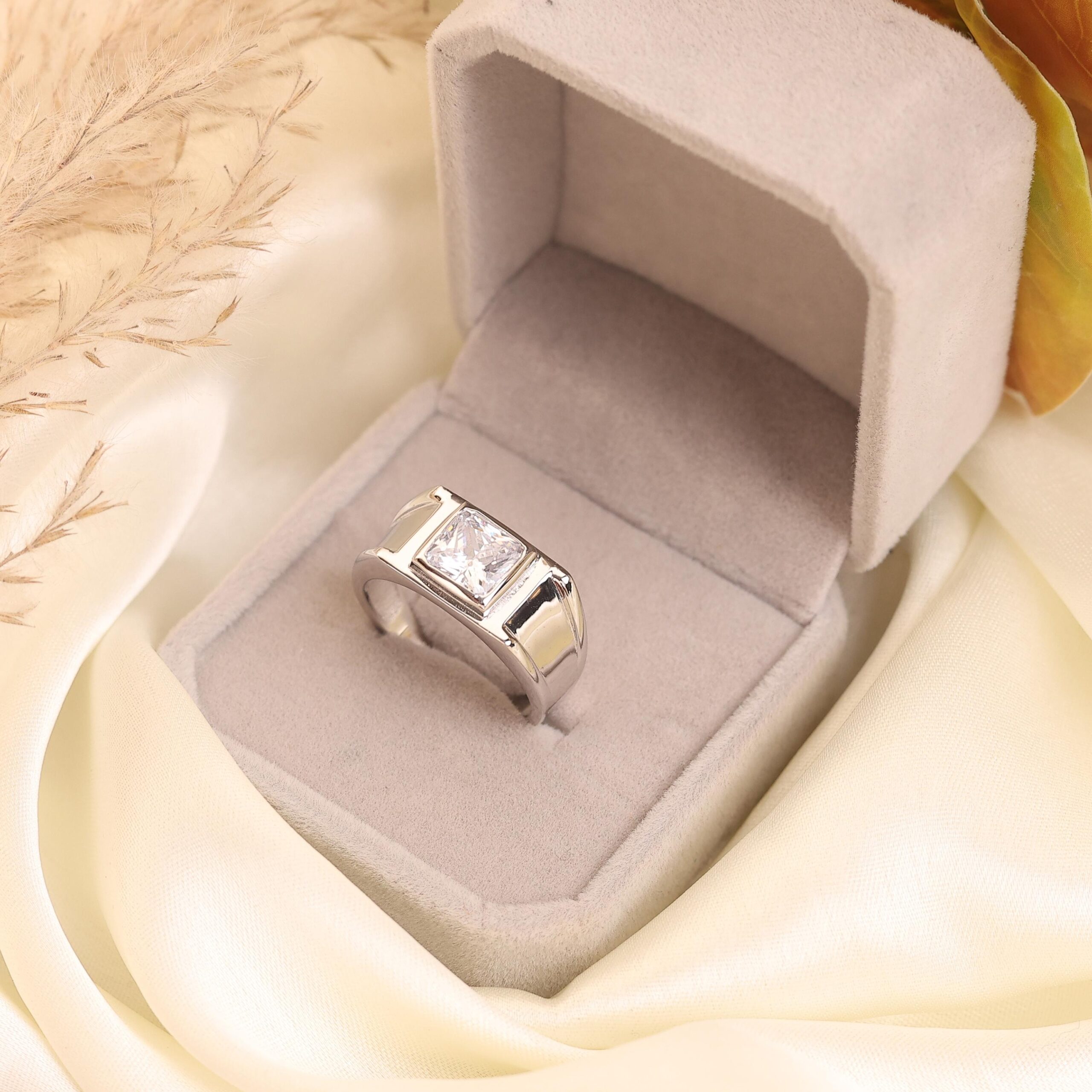 A stylish men’s ring featuring a bold square-cut stone set in a sleek, polished band. Designed for a modern, confident look with timeless appeal.