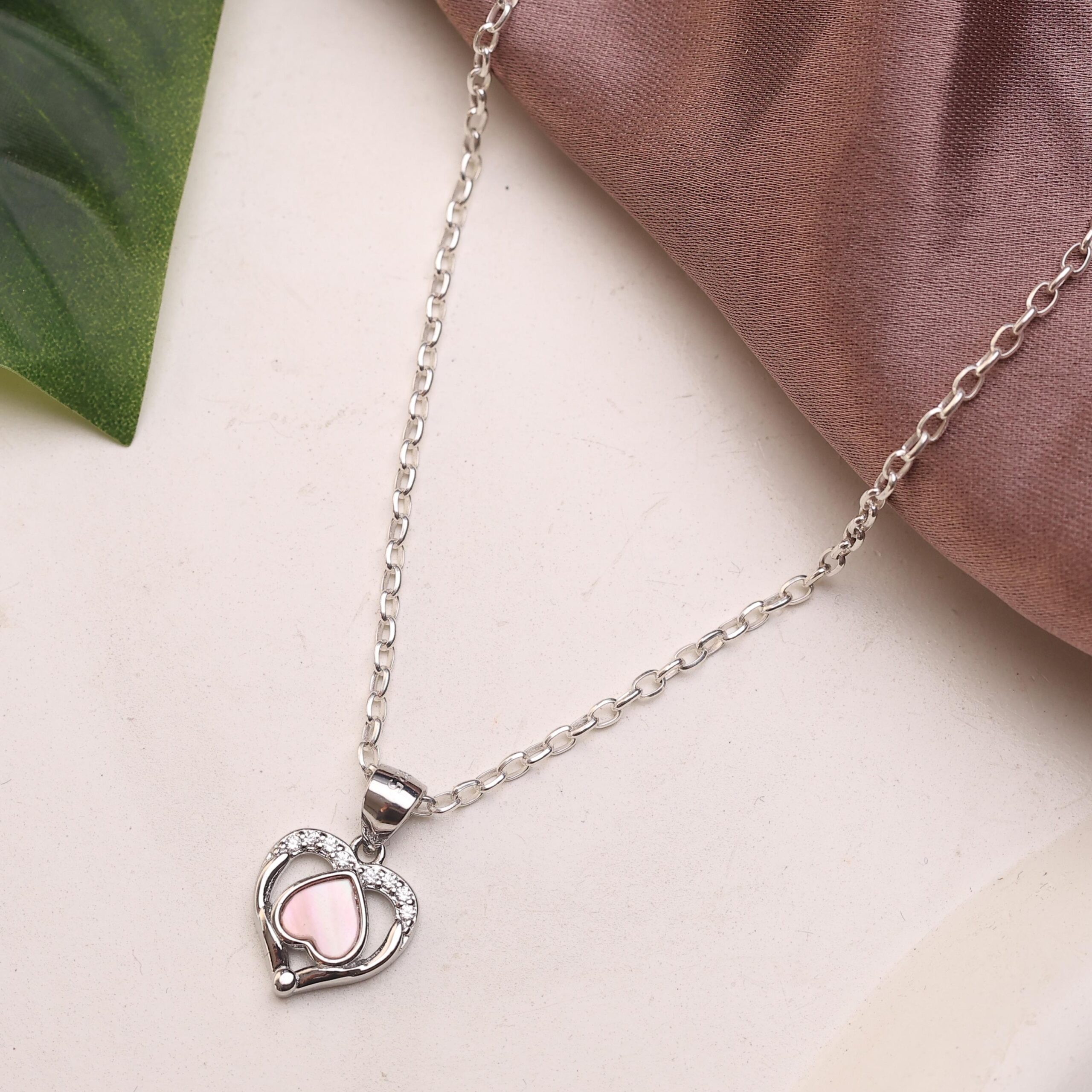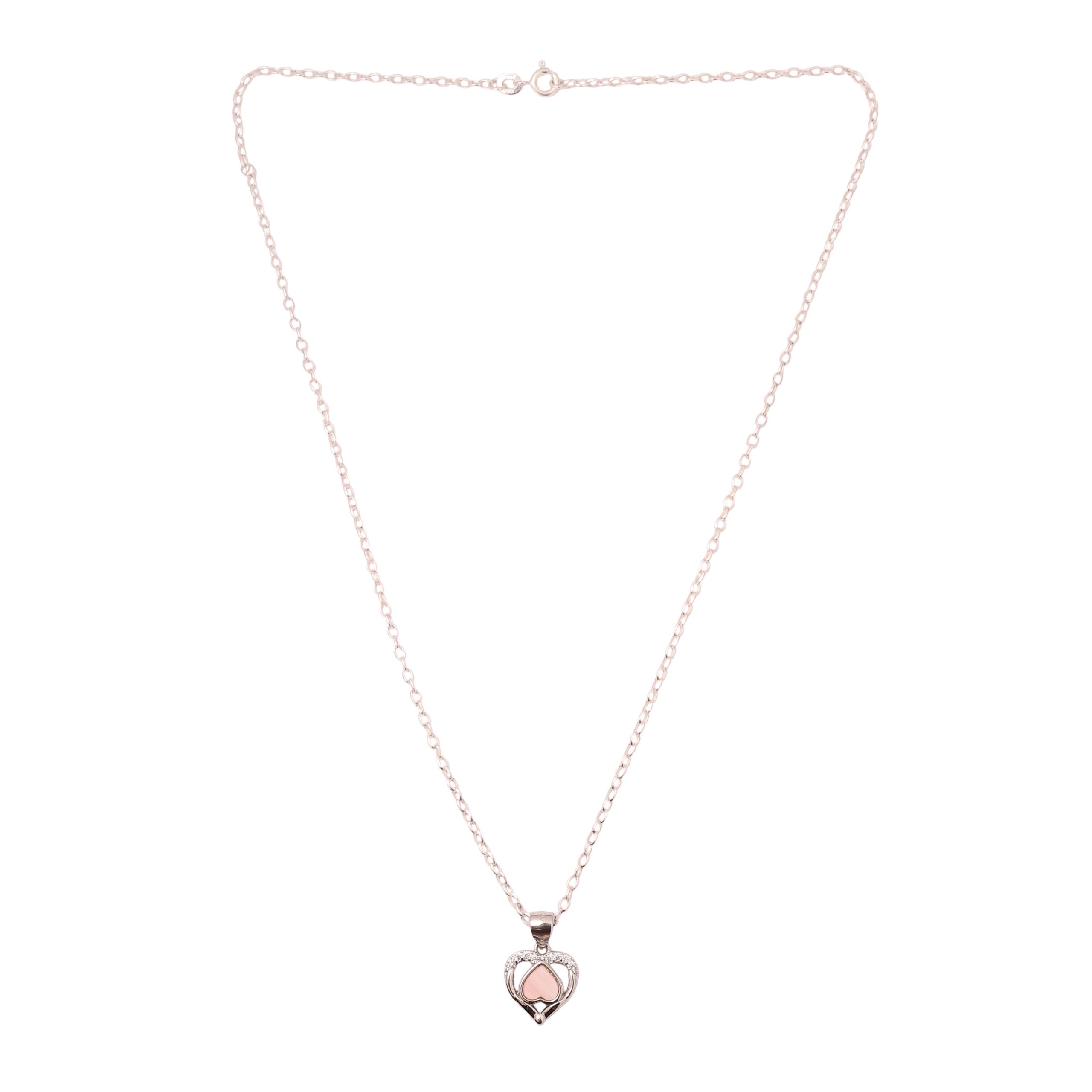Delicate and timeless, this heart pendant necklace is designed to add a soft touch of elegance to any look. Crafted with a polished silver-tone chain, the pendant features a graceful open-heart design accented with a blush-pink center and subtle crystal detailing for a refined sparkle. Lightweight and comfortable, it’s perfect for everyday wear or special occasions, making it a meaningful gift for someone special or a beautiful addition to your own jewelry collection.