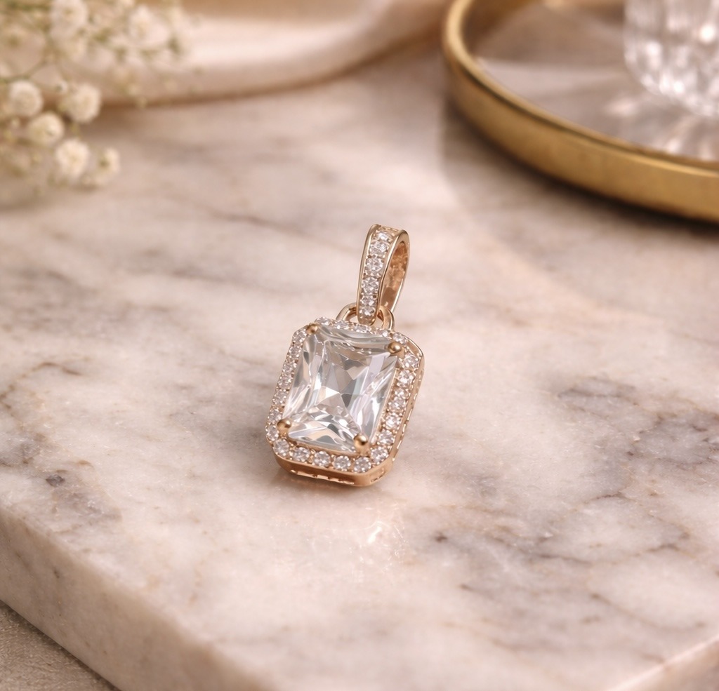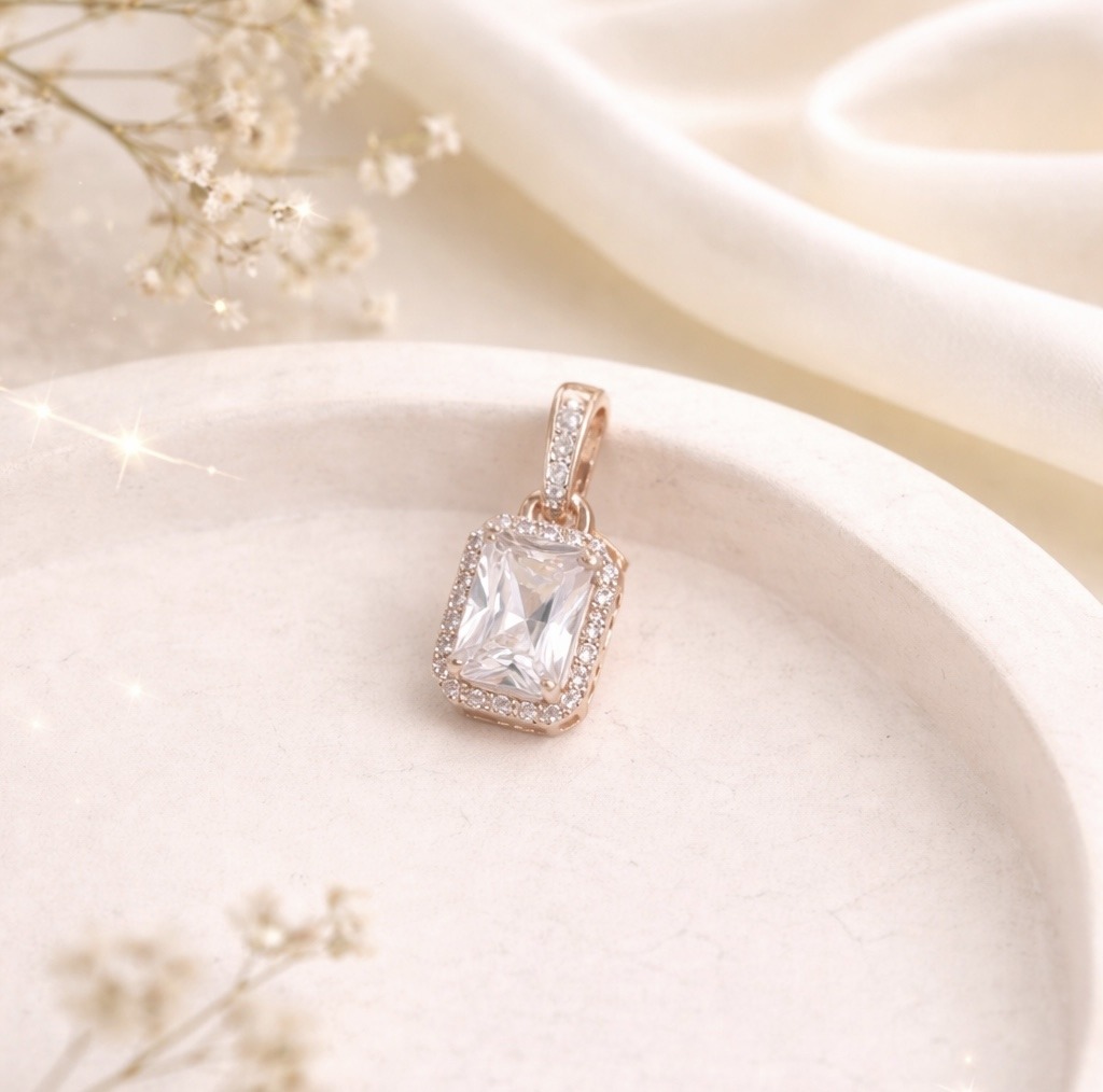 Add a touch of refined glamour to your jewelry collection with this stunning crystal pendant necklace 💎. Featuring a beautifully cut rectangular stone surrounded by a delicate halo of shimmering accents, this piece captures light from every angle for a radiant finish ✨.