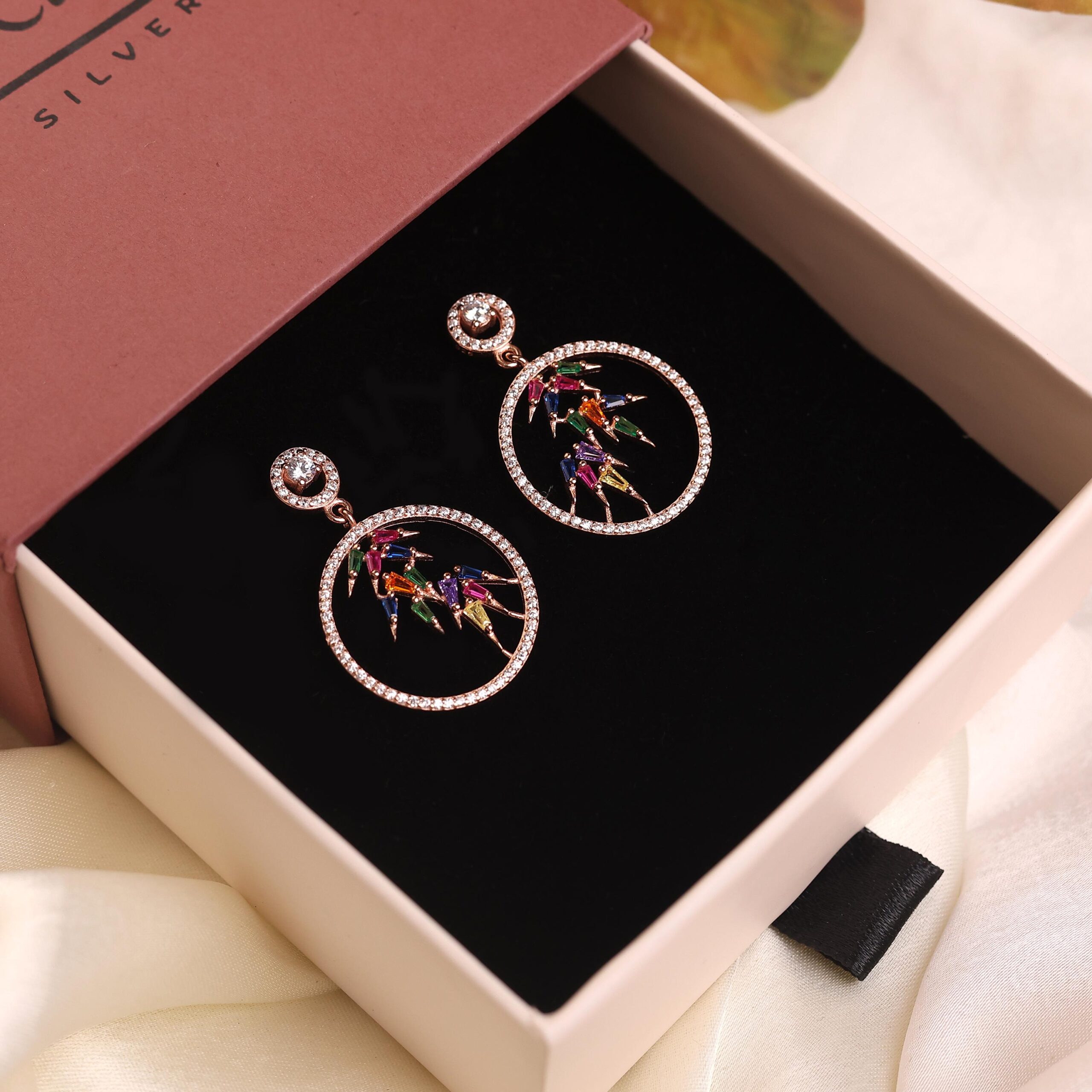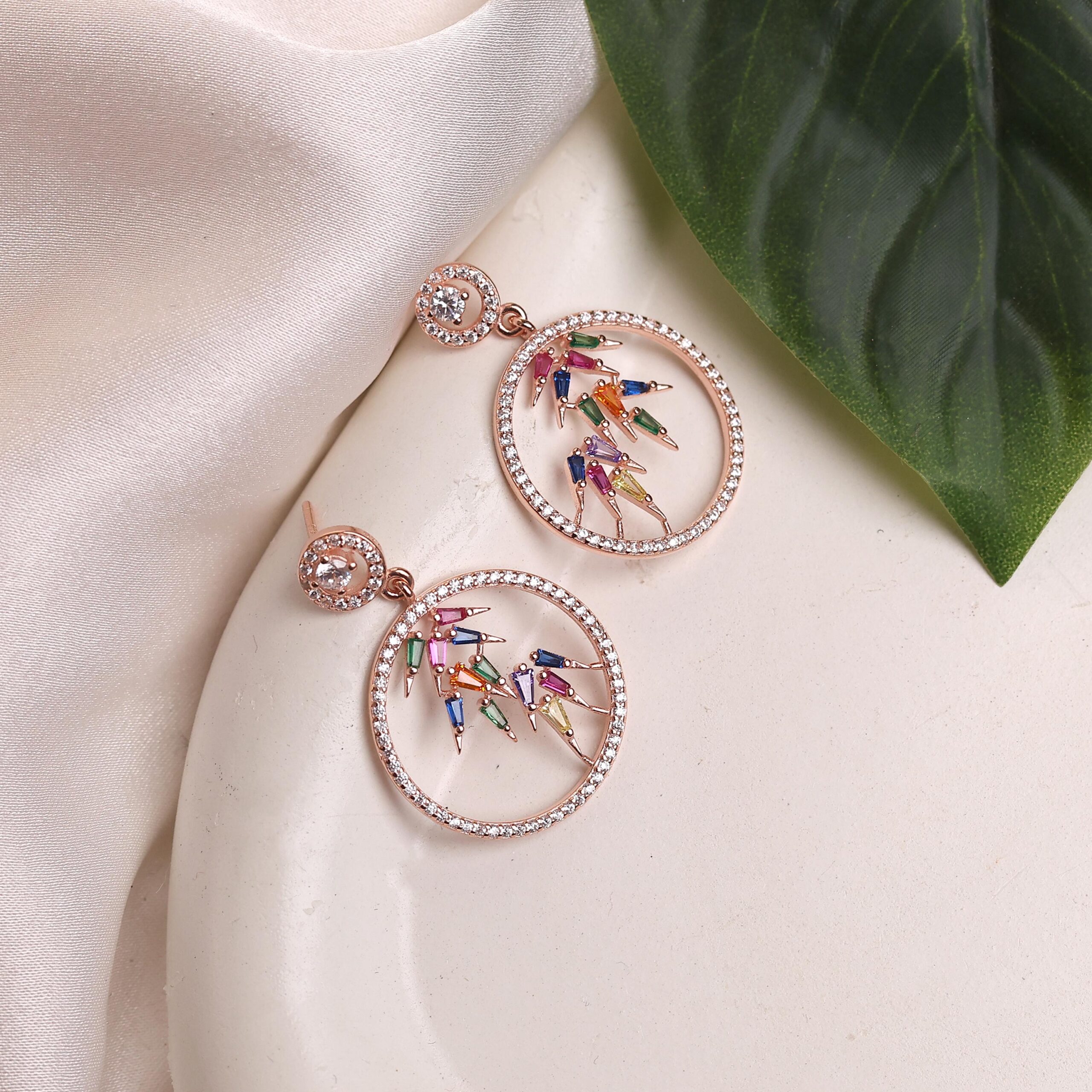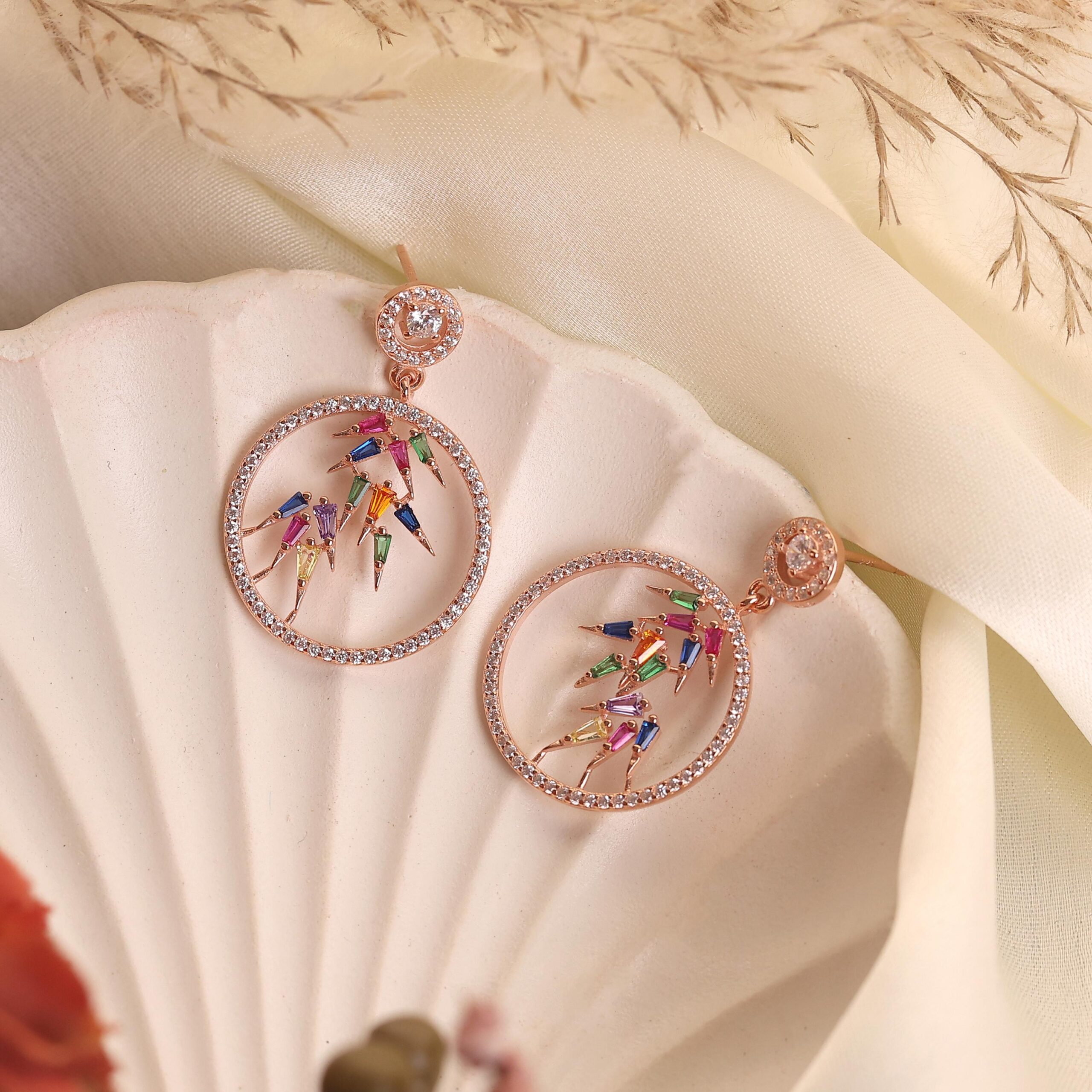 The warm rose gold finish paired with multicolored accents creates a perfect balance of sophistication and fun. Lightweight and comfortable, these earrings are ideal for both daytime styling and evening occasions ✨