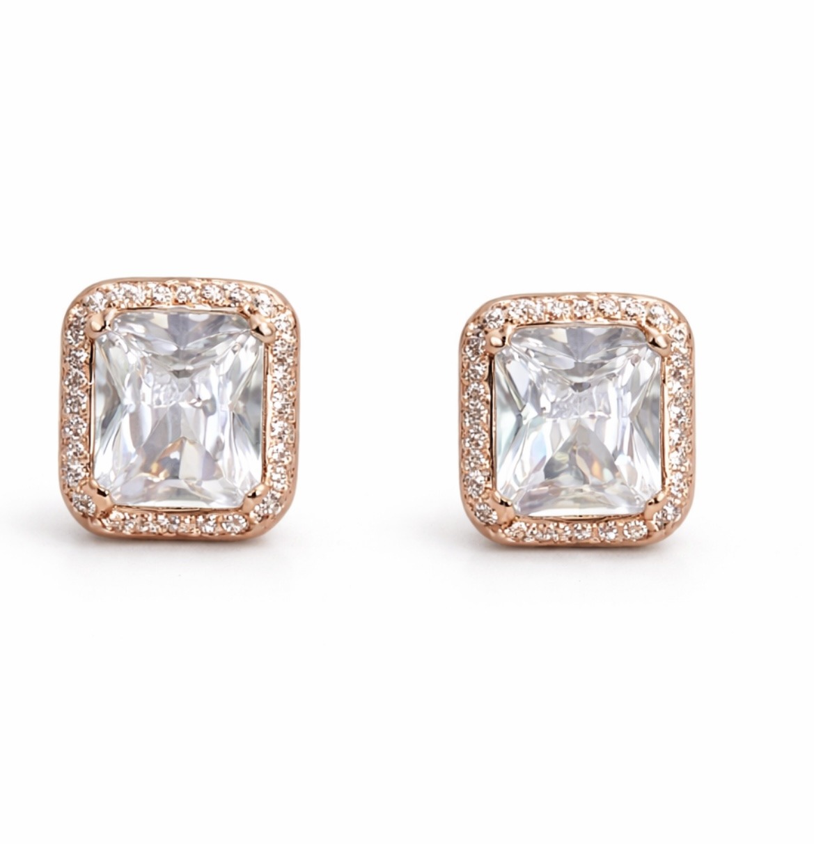Rose Gold Radiant Halo Stud Earrings