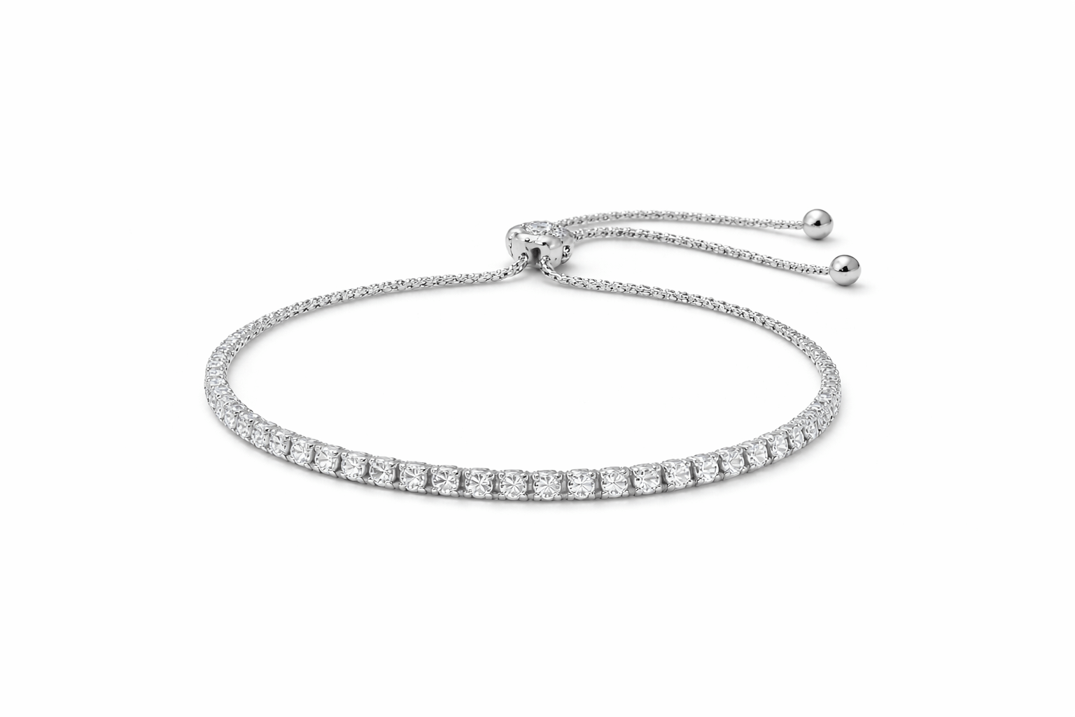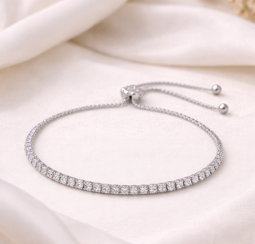 A sleek adjustable tennis bracelet featuring sparkling square-cut stones for a refined everyday luxury look.